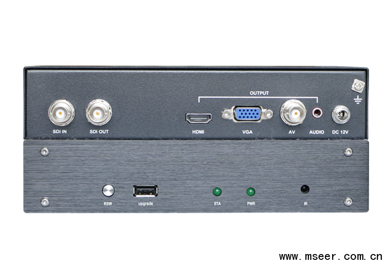 MSTH101是一款廣播級(jí)多功能轉(zhuǎn)換器,將高清數(shù)字分量串行接口(SDI、HD-SDI和3G-SDI)信號(hào)轉(zhuǎn)換為HDMI和VGA和AV(CVBS)信號(hào)。該設(shè)備集成SDI接收器及HDMI 調(diào)制器,可方便的將SDI信號(hào)轉(zhuǎn)為HDMI/VGA/CVBS信號(hào),同時(shí)會(huì)將SDI所帶音頻信號(hào)分離轉(zhuǎn)換后嵌入到HDMI信號(hào)中,或獨(dú)立的模擬(立體聲)音頻通道輸出,以實(shí)現(xiàn)聲音及圖像同步傳輸。