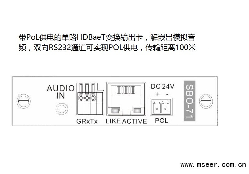 SBO-71 HDBaseT單通道變換輸出卡,配合SMD主機使用,采用獨立板卡設(shè)計,每塊卡支持1路HDBaseT輸出,可加嵌入模擬音頻,雙向RS232通道可實現(xiàn)POL供電,傳輸距離100米,支持最高1920x1200P60的數(shù)字高清圖像傳輸.