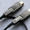 HDMI光纖線具有較好的抗電磁和射頻干擾。相較于傳統(tǒng)銅纜,光纖HDMI線具有傳輸更長(zhǎng)、更細(xì)、更軟、信號(hào)質(zhì)量更高的特點(diǎn),產(chǎn)品可在具有挑戰(zhàn)性的環(huán)境下穩(wěn)定、可靠的工作。